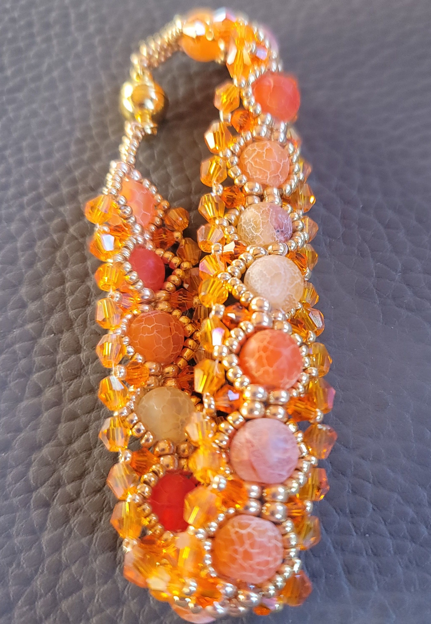 Lava beads with accent bicones surrounded by Japanese seed beads. Size 20 cms with a magnetic clasp.